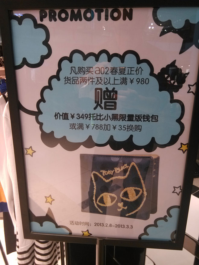 凡购买a02春夏正价货品两件及以上满¥980,即可获赠价值¥349托比小黑限量版钱包一个。当然您也可以满¥788再加¥35进行换购